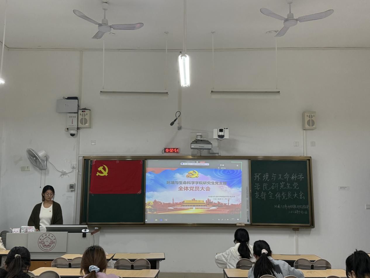 研究生党支部于11月2日晚在武鸣校区1号教学楼103教室召开全体党员大会。本次大会的主要议题为讨论确定程耿庆等7位入党积极分子列为发展对象事宜。