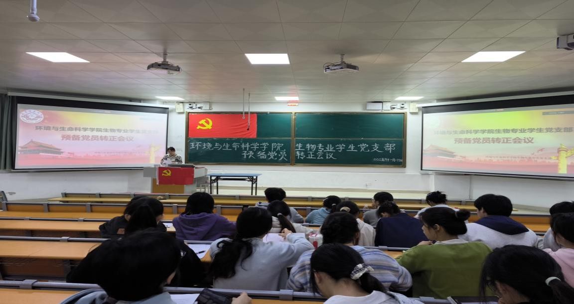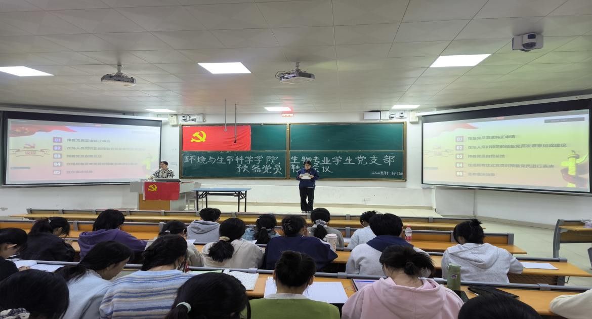 生物专业学生党支部于2025年11月25日在武鸣校区1号教学楼114教室召开预备党员转正会议。会议采用线上线下结合的形式进行,会议由党支部书记刘雅楠主持,全体党员参加会议。
