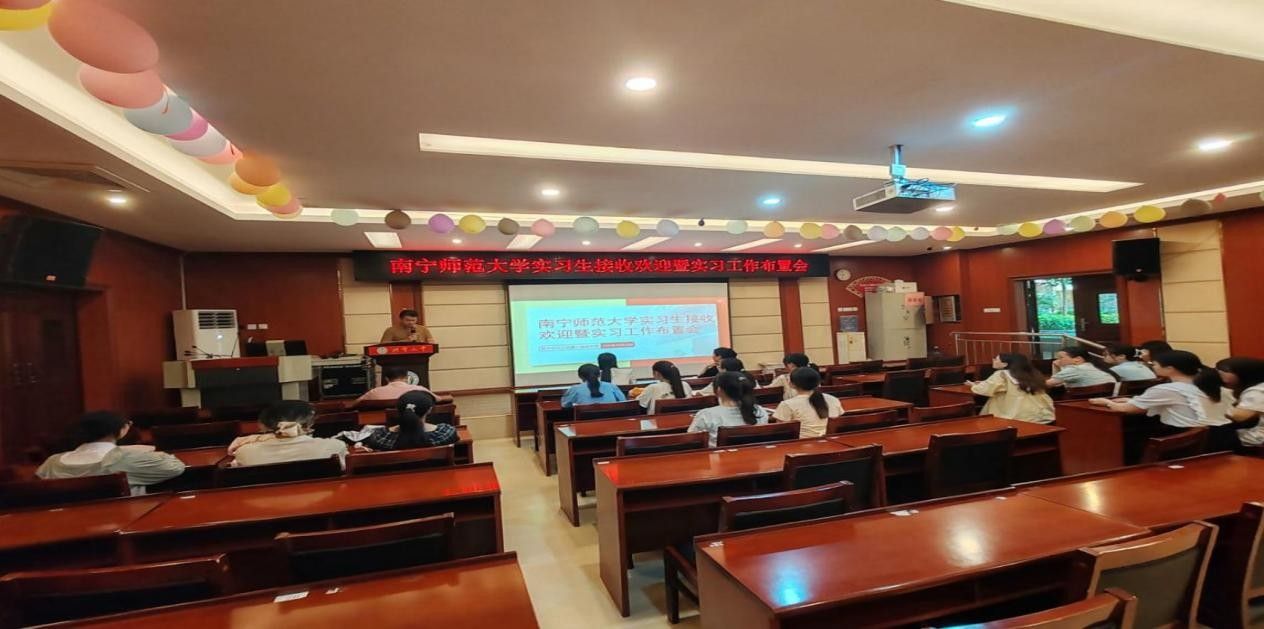 实习生见面会上,廖小瑶副校长代表学校对同学们表示欢迎,并带领大家参观校园。韦继平副校长介绍了学校办学概况,并对实习工作提出具体要求与建议,鼓励同学们在实践中成长,努力成为一名合格的教育工作者。