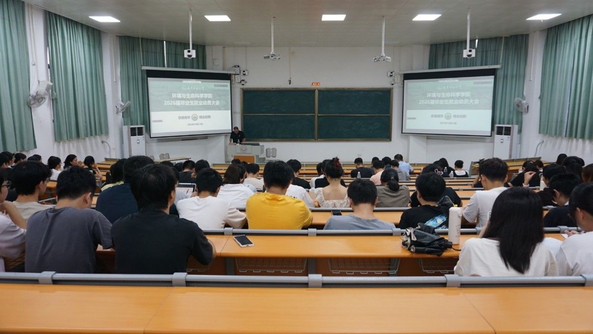 于10月14日下午在武鸣校区2号教学楼221教室召开2026届毕业生就业动员大会。参会人员有学院党委副书记刘启满、曲炳鹏老师、学院辅导员、毕业班班主任、就业指导老师、优秀毕业生刘慧子以及2026届毕业生。