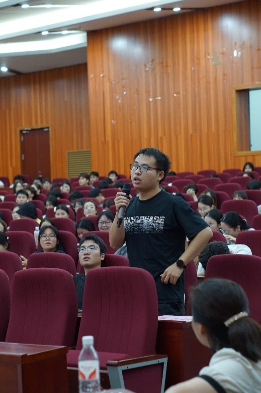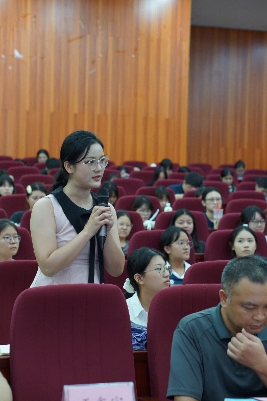 在互动答疑环节,在场师生围绕学业规划、职业发展等问题踊跃提问,张荣海校友逐一耐心回应。当被问及“如何平衡学习与生活”时,他寄语同学们:“大学是能力提升的黄金期,要主动跳出舒适区锻炼自己,时间从来不是‘等’出来的,而是靠合理规划‘挤’出来的。”
