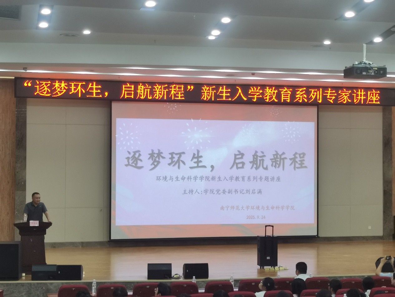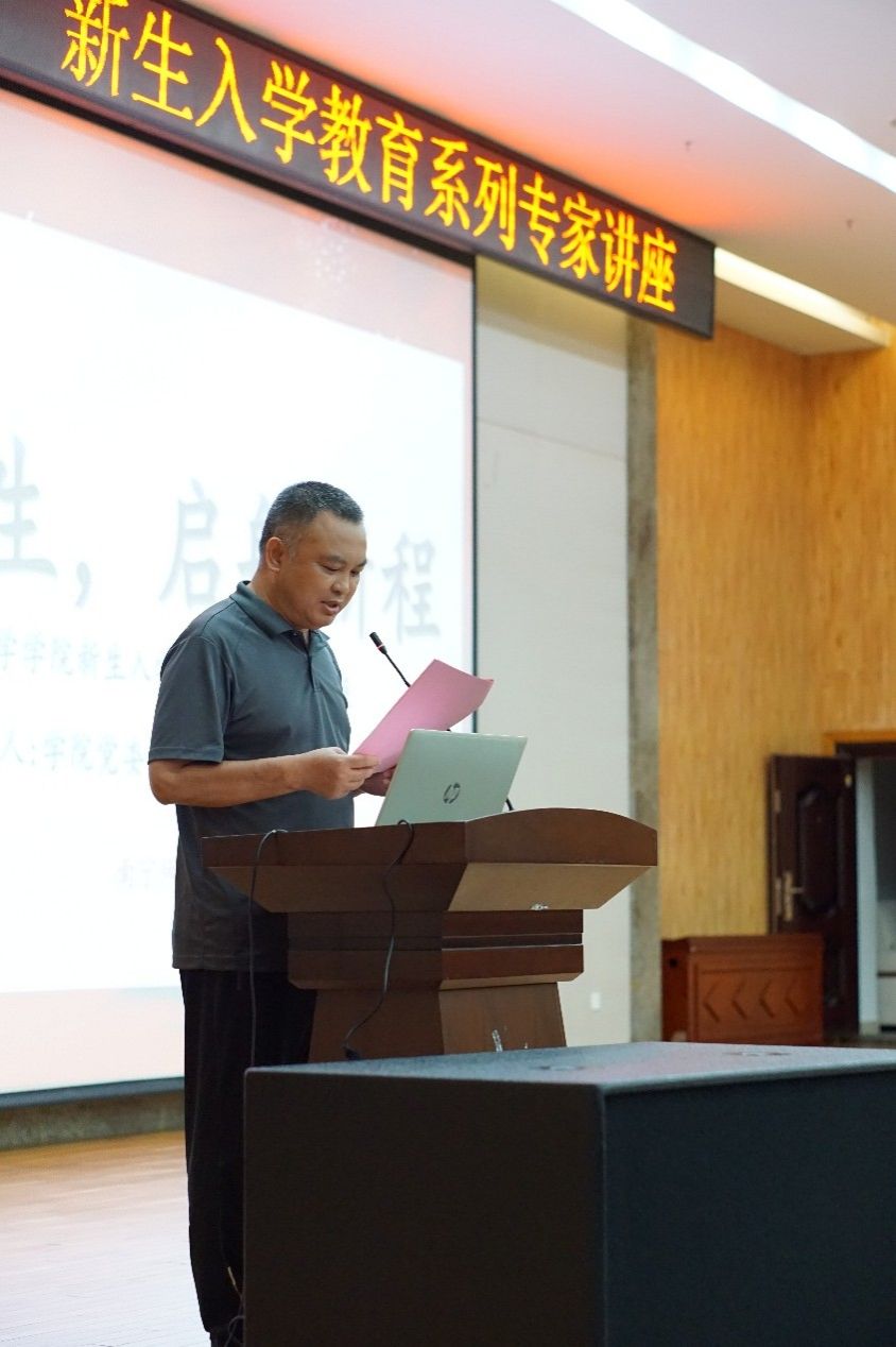 在武鸣校区图书馆一楼报告厅举办“逐梦环生,启航新程”新生入学教育专题讲座。本次活动由学院党委副书记刘启满主持,特邀优秀毕业生校友张荣海返校,以亲身经历为师生分享成长故事与职业感悟。