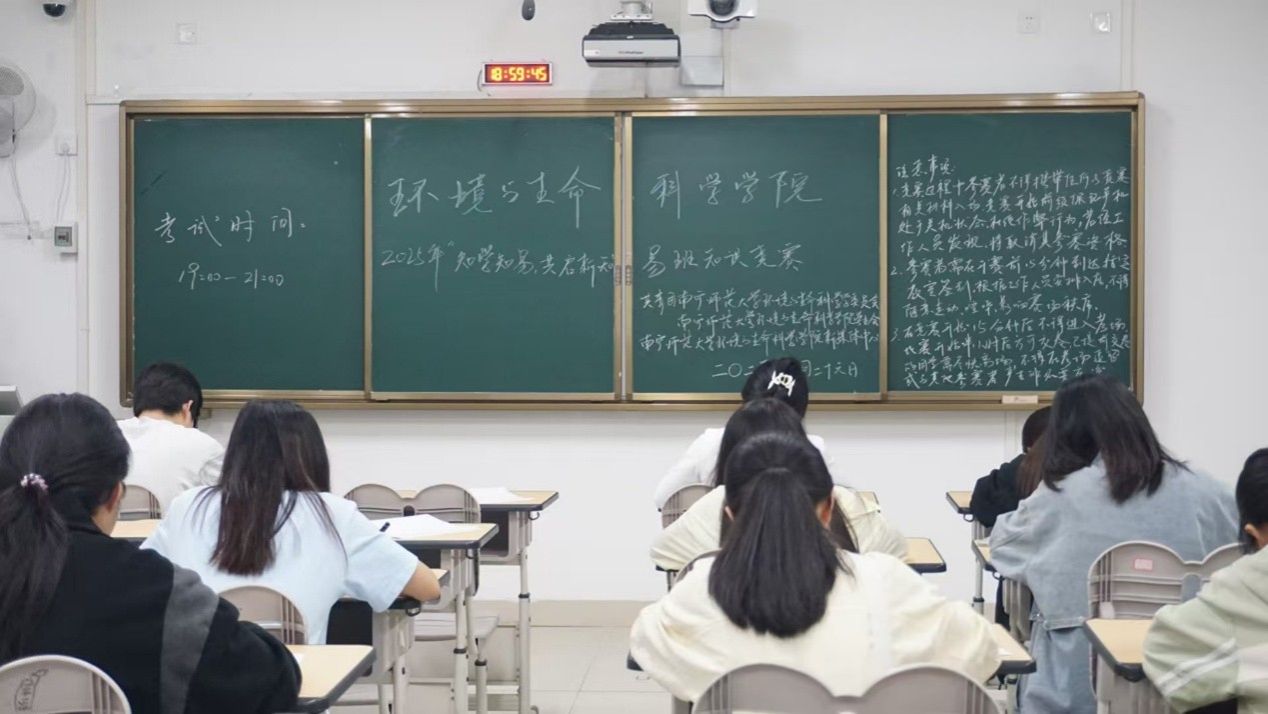 竞赛开始前,工作人员已在黑板上清晰标注了考试时间与注意事项,为参赛同学营造了良好的竞赛环境。开赛前十五分钟,参赛同学陆续抵达现场并有序完成签到。在工作人员引导下,大家依次就座,安静候考。考前五分钟,试卷正式分发。本次竞赛试题涵盖单项选择题、多项选择题、判断题、填空题及简答题五大类型,内容涉及易班各部门职能、APP操作技巧以及公文写作规范等多个方面,全面考察学生对易班平台的熟悉程度。