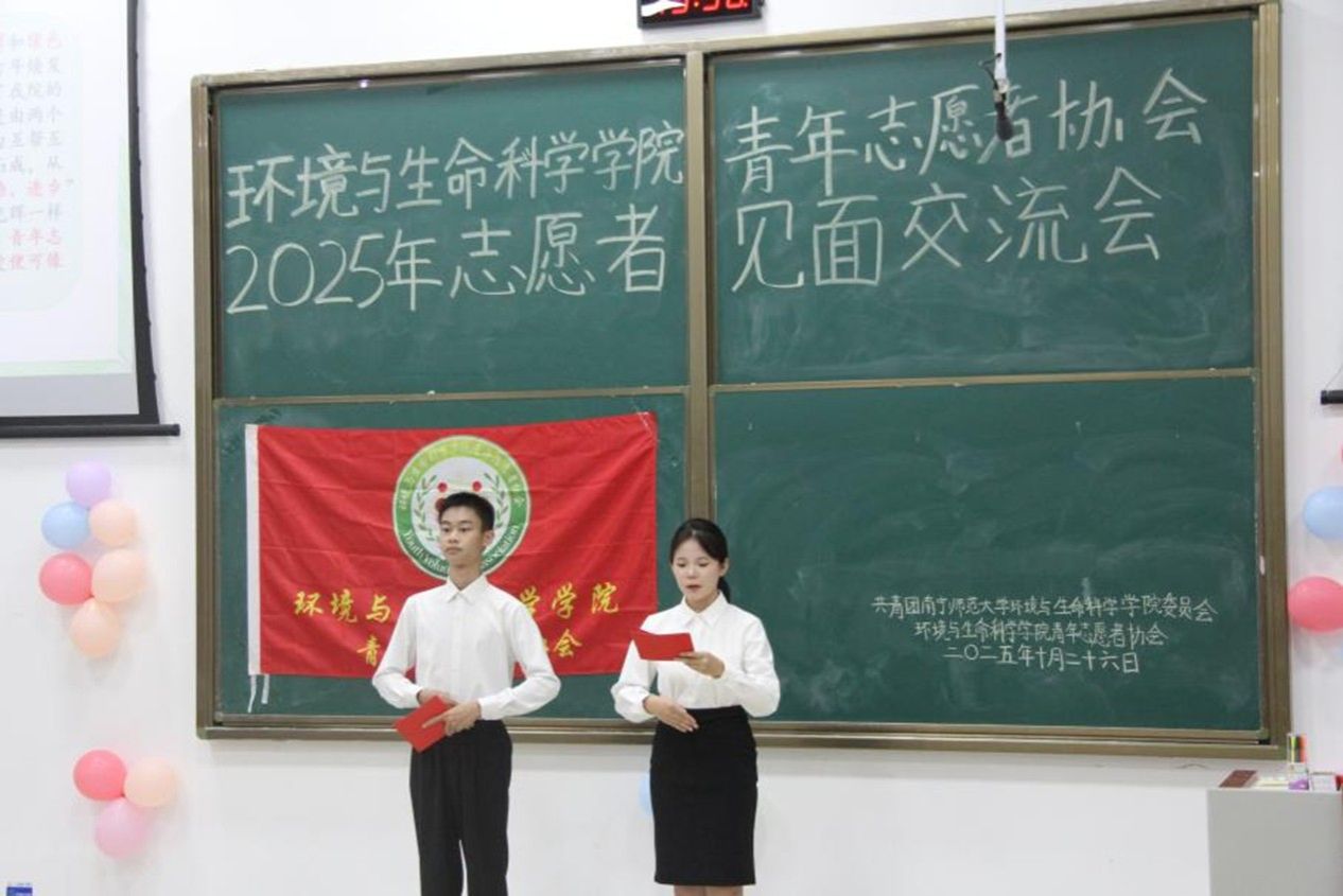 青年志愿者协会于10月26日晚在武鸣校区地海楼B109教室召开2025级志愿者团队见面交流会。青年志愿者协会成员及各年级志愿者共同参与了本次活动。