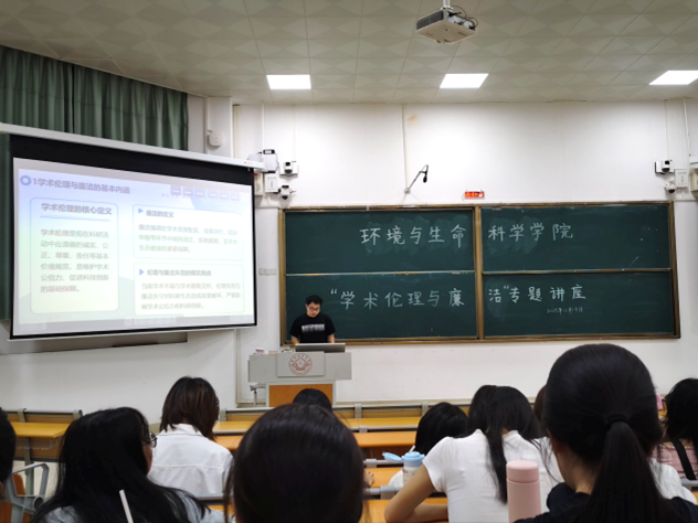 首先,徐超昊老师以“恪守学术规范,坚守廉洁底线”为主题展开报告。他从当前学术生态现状切入,指出剽窃抄袭、数据造假、成果篡改等学术不端行为正严重冲击学术研究的公平性与正直性,并详细阐释了各类学术不端行为的定义。徐老师强调,这些行为不仅严重违背学术道德、破坏学术生态公平,更可能引发法律后果,对个人学术生涯与院校学术声誉造成不可逆损害。报告尾声,徐老师以“学术之路,诚信为基;廉洁之心,终身坚守”为核心寄语,呼吁全体研究生以学术诚信为行为准则,以廉洁品格为价值追求,主动承担学术诚信践行者、学术廉洁守护者与学术精神传承者的三重角色,以严谨治学态度探索真理,以清正廉洁素养守护学术净土。