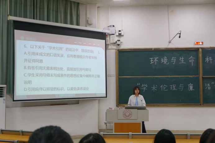 此次活动以“硕导授课+国奖获得者经验分享+知识宣讲+趣味竞答”的多元形式,不仅帮助研究生深刻厘清学术伦理的“底线”与“红线”,更通过实战经验传递与典型案例剖析,让学术规范知识从抽象理论转化为可感知、可践行的行动指南,为研究生筑牢学术诚信根基、规避学术生涯风险提供了关键指引。这一活动的开展,既是对校园廉洁文化建设与研究生学术道德教育的深化落实,更切实为研究生学术能力提升与品格塑造搭建了平台,助力其在科研起步阶段便树立正确学术观。