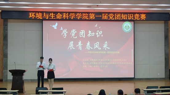 竞赛伊始,现场氛围渐浓。主持人介绍完嘉宾、明确比赛规则后,高声宣布第一届党团知识竞赛正式开赛。