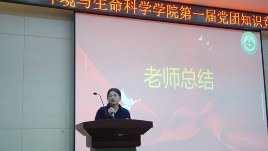 竞赛的最后,辅导员甘佩萍对本次知识竞赛作了总结,肯定了各参赛队伍的精心筹备与精彩表现,赞扬了学子们在竞赛中展现出的扎实理论功底、良好协作意识与奋勇争先的精神风貌,鼓励大家以赛为鉴,在今后的学习中持续深化对党的创新理论、党史团史的理解,做到学深悟透、学以致用。