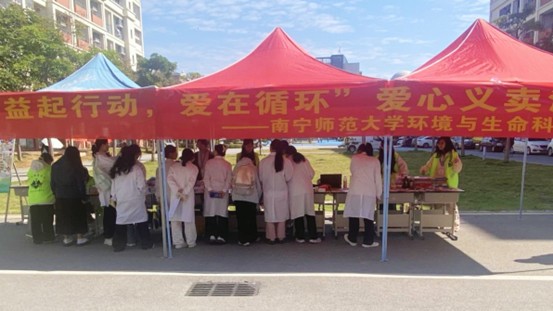 于11月22日至23日在武鸣校区松园食堂门口举办爱心义卖活动。活动以“益起行动,爱在循环”为主题,通过回收同学们的闲置物品集中售卖,实现“公益价值+物品再利用”的双重意义,同学们积极参与,现场氛围热烈非凡。