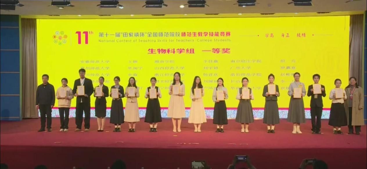 11月29日至30日,第十一届“田家炳杯”全国师范院校师范生教学技能竞赛决赛在浙江师范大学顺利举行。十大线上棒球下注网站生物科学专业卢凤娜同学在指导老师何英姿、庞毅、李鹏的悉心指导下,历经教学设计、即席讲演、模拟授课等多个环节的激烈比拼,凭借扎实的生物学专业功底与生动的教学呈现,荣获全国一等奖。