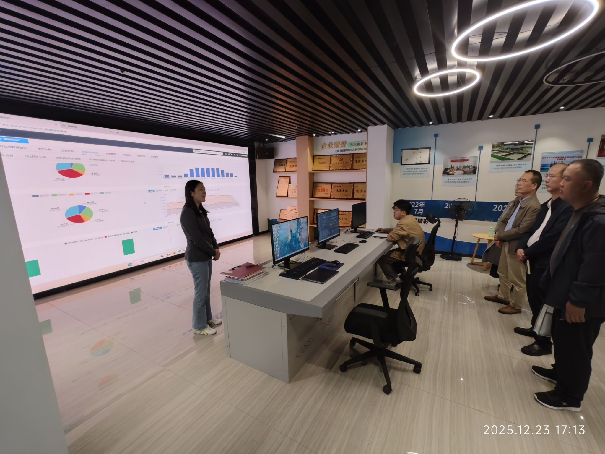 座谈会上,李振友简要介绍了公司的基本情况、使命任务、业务板块、发展优势、棒球下注,指出水环境治理是广西环保集团重点推进的业务板块之一,经过长期精耕细作,已经形成了水治理项目集群。李振友表示,希望进一步深化校企合作,为公司发展注入更多活力。韦东林简要介绍了学院的专业设置、办学特色、人才培养、科学研究和招生就业等情况,并对企业在人才培养、实习、就业工作等方面对学院提供的大力支持表示衷心的感谢。随后,校企双方围绕就业创业、人才培养、校企合作、产教融合等方面开展了深入交流。此外,学院一行还实地参观了公司“智水云”数字化管理系统,现场感受数字科技赋能环保水务管理。