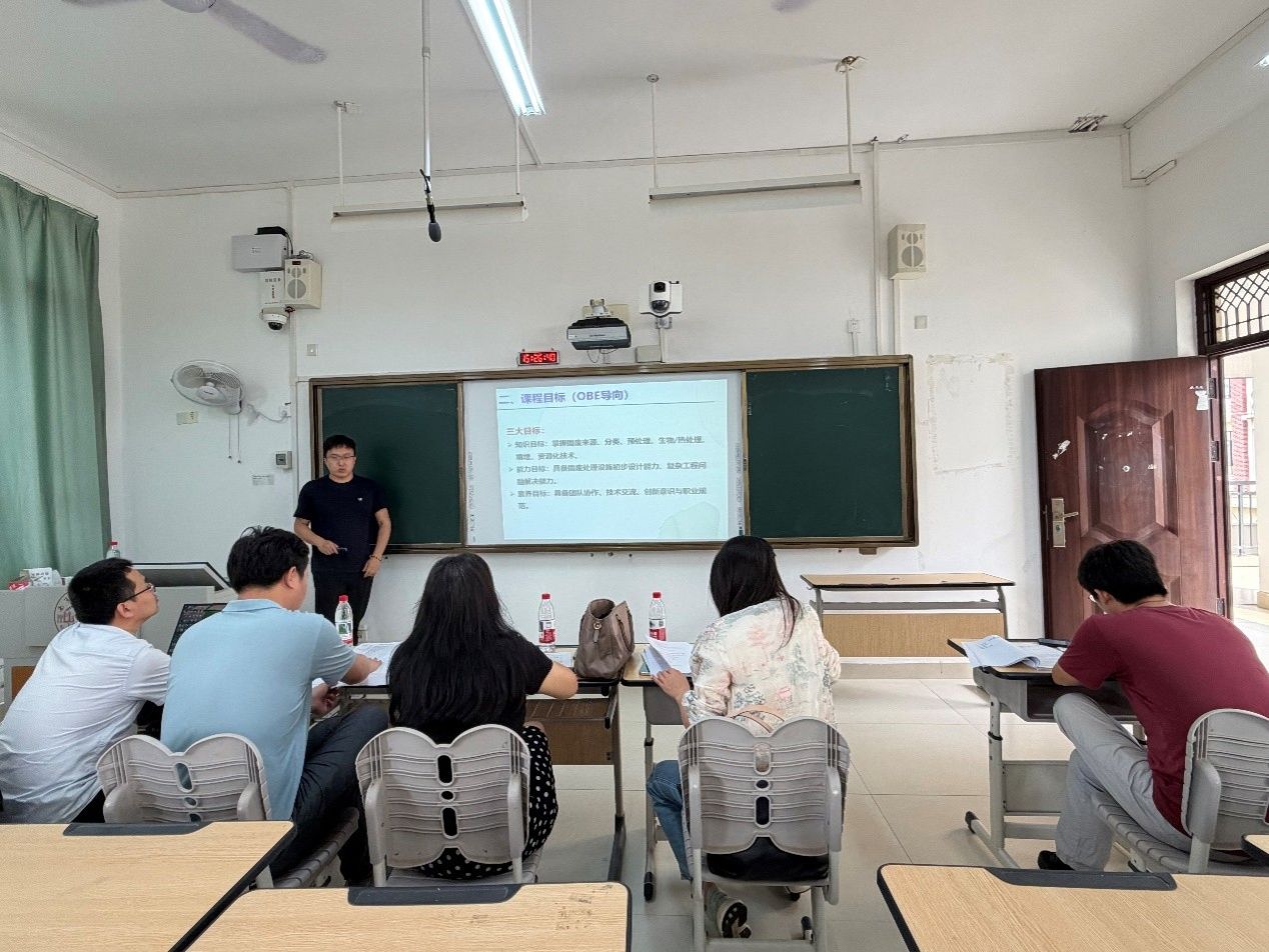 比赛中,四位教师立足各自专业课程,围绕课程目标、教学内容、教学方法、课程思政及教学评价等方面进行了精彩的说课展示。黄富老师围绕《环境影响评价》课程,系统阐述了如何结合国家环保政策与最新法规,引导学生掌握环境影响评价的基本理论与实际应用能力,突出课程的实践性与时代性。容群老师在《环境监测》课程展示中,强调理论与实践相结合,重点介绍了实验教学环节的设计思路,注重培养学生严谨求实的科学态度和数据分析能力。张拓老师则以《固体废物处理与处置》课程为例,分享了在“双碳”背景下,如何将固废资源化、减量化、无害化理念融入教学全过程,激发学生服务生态文明建设的责任感。张越老师在《水污染控制工程》课程中,围绕典型水处理工艺流程,展示了案例教学与工程实践相结合的教学模式,着力提升学生的工程素养与创新能力。