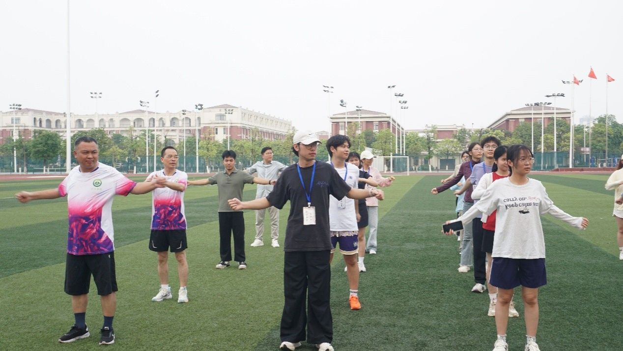 接着,体育部两位工作人员带领大家热身,逐一示范指导,强调热身对运动防护的重要性。跑者们认真操练,唤醒身体,以最佳状态迎接奔跑之旅。